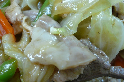 四季豆、敏豆、豬肝、粉腸、豬肉、花菜、高麗菜、紅蘿蔔…